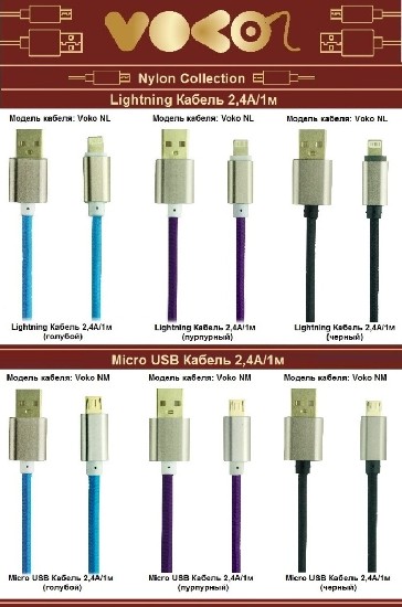 2. VOKO Nylon Collection для Apple (Lightning разъем) и Android смартфонов (Micro USB разъем)