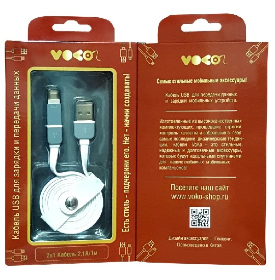 Стильные и надежные Lightning и Micro USB кабели VOKO для Android и Apple устройств.