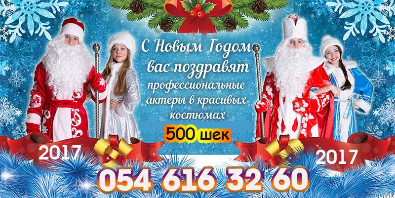 Больше информации как пригласить на дом Деда Мороза и Снегурочку www.royaleventisrael.com.