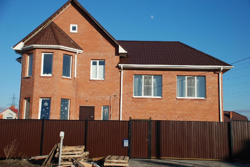 Продается дом в с. Александровка, Новоусманского р-на. Отделка 100 %. Дом кирпичный, окна пластиковые, крыша металлочерепица, толщина стен 50 см. Материал стен: газосиликат, кирпич. Большой гараж на 2 машиноместа (площадь 50 м2). Во всех комнатах современный ремонт. 1 этаж: прихожая, гостинная, туалет, кухня-столовая с выходом на террасу. 1,5 этаж: большая гостинная 50 м². 2 этаж: 3 спальни, ванная, туалет. Чердак. Дом обеспечен всеми коммуникациями: центральное водоснабжение, центральная канализация, газ, электричество, интернет (рядом с домом). Весь поселок полностью асфальтирован. Улица закрыта шлагбаумами с обеих сторон. Участок огорожен. Имеются механические откатные ворота. На участке посажен молодой сад, растет более 30 плодовых деревьев и кустарников. В шаговой доступности в поселке находится детский сад "Радуга". Удаленность от города составляет 3 км.