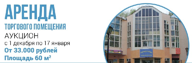 Аукцион на аренду торгового помещения (по галандской схеме) от 550 рублей за квадратный метр. Площадь помещения – 60 кв.м. Назначение: свободное.
