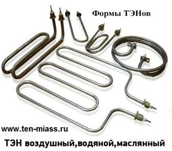 Компания Тэн-Миасс предлагает тэны любых форм и размеров. Воздушный, маслянный, водяной в наличии и на заказ, в наличии, с доставкой. Выгодно! минимальные сроки изготовления! У нас покупают тэны для завесы, тэн на парогенератор ( ПК2, и др), тэны для Машины пальеранни, тэны для пастеризации, наши тэны используются в ноже на этикеровочной машине, DAKON PTE-L-6M, электроподогреватель блока очистки станции кислородоазотодобывающей СКДС-79М2, Тэн на Печку РКП-4, тэн для производства вафельных стаканчиков, делаем тэны для производственных плит, нагревательные, тены для отопления, для нагрева воды, для отопления в бытовках, отопительные, тены для подогрева масла, нагревательны, водяной, к масленному нагревателю, тен - обогреватель, блоки, тен воздушный окдп, воздушные, оребренные, тэн водяной 1. 25 квт, 2квт, 3 квт, 4, 5 квт, 6 квт и др. , электрический, тэн воздушный 170-д 10-1, 1 кв, тэны для мазута. по всем вопросам пишите на имэйл или звоните
